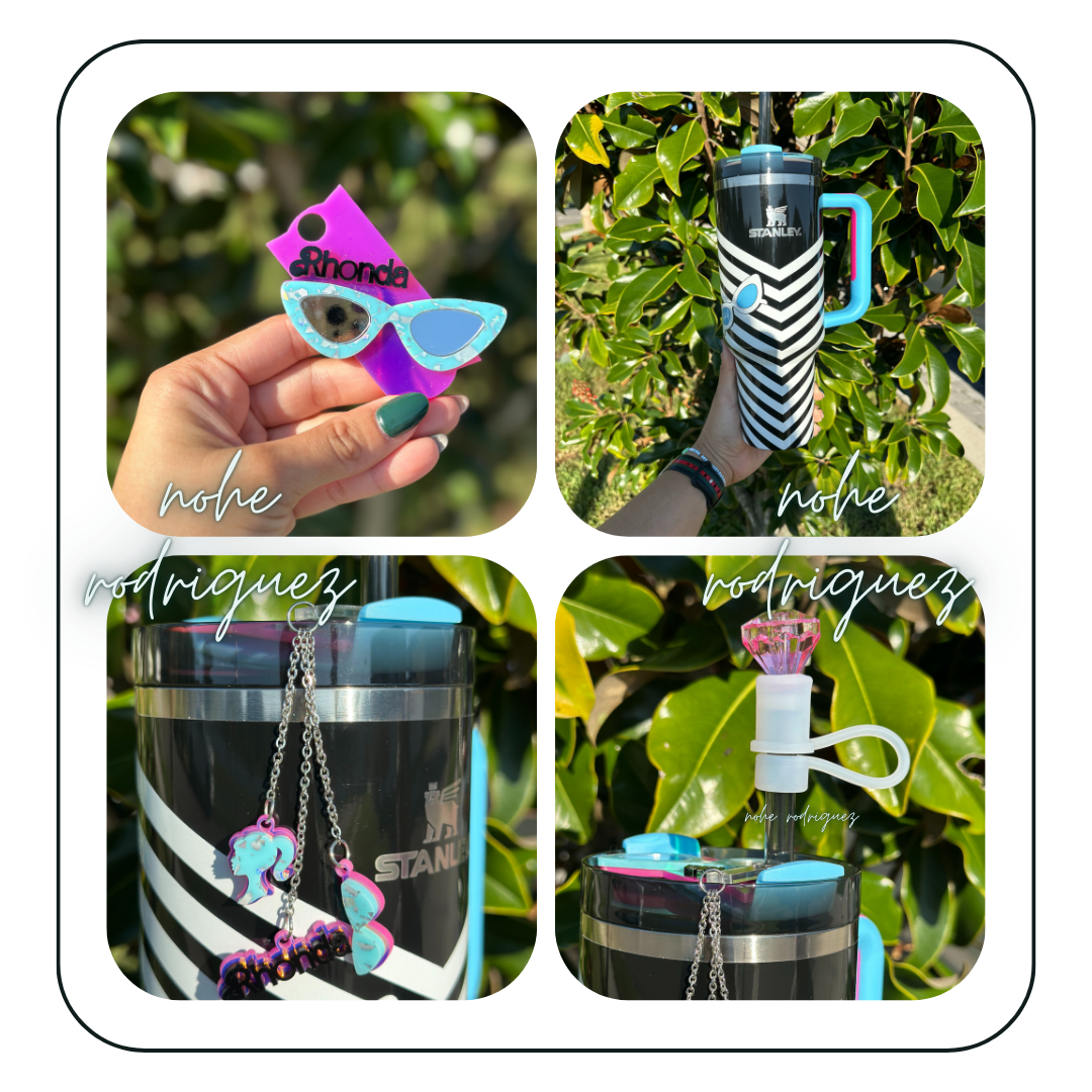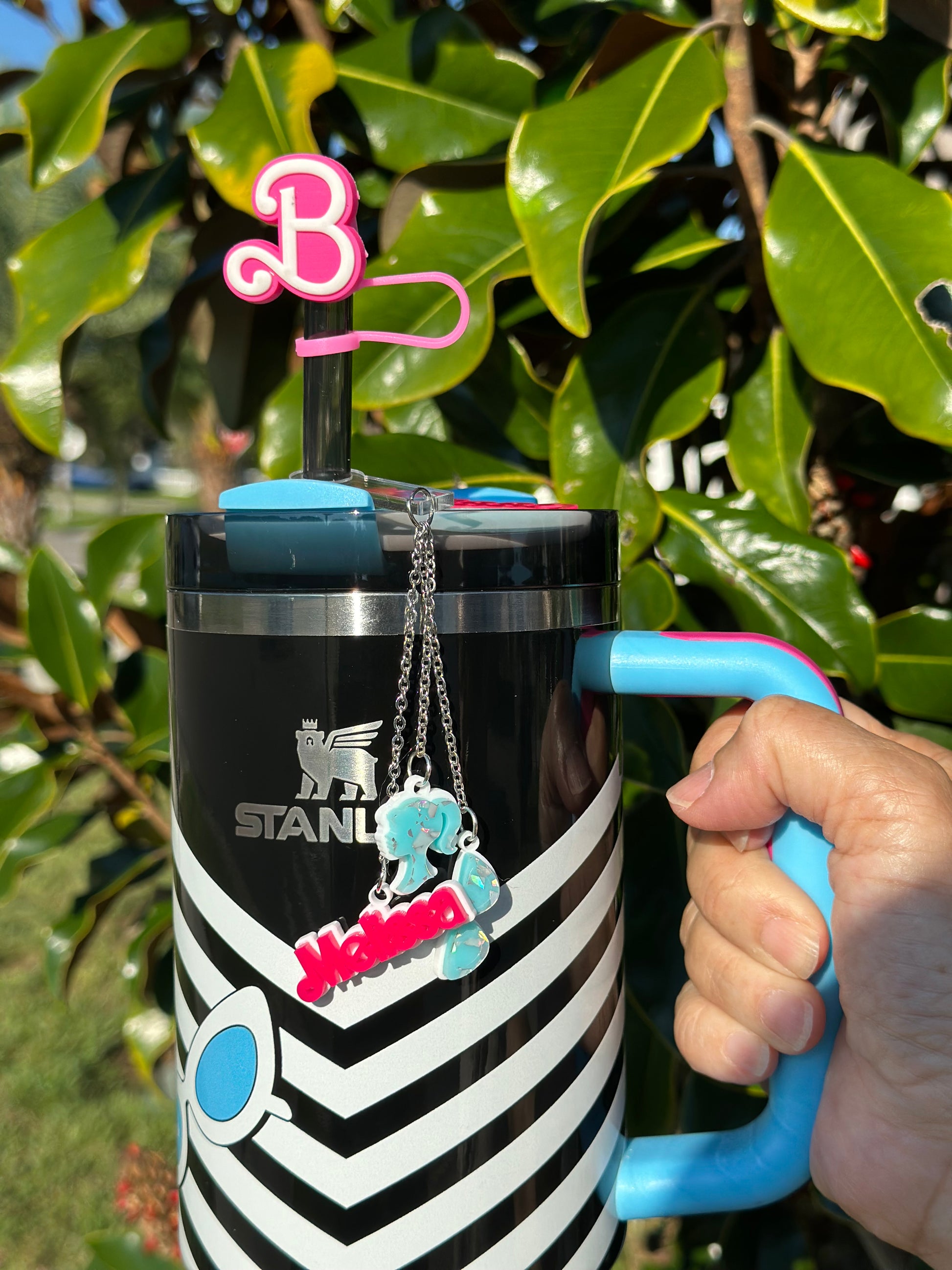 💖 Pink Girly Tumbler Accessories Set | Personalized Name Plate, Straw Topper & Charms | Fits 40oz & 30oz Tumblers 💅