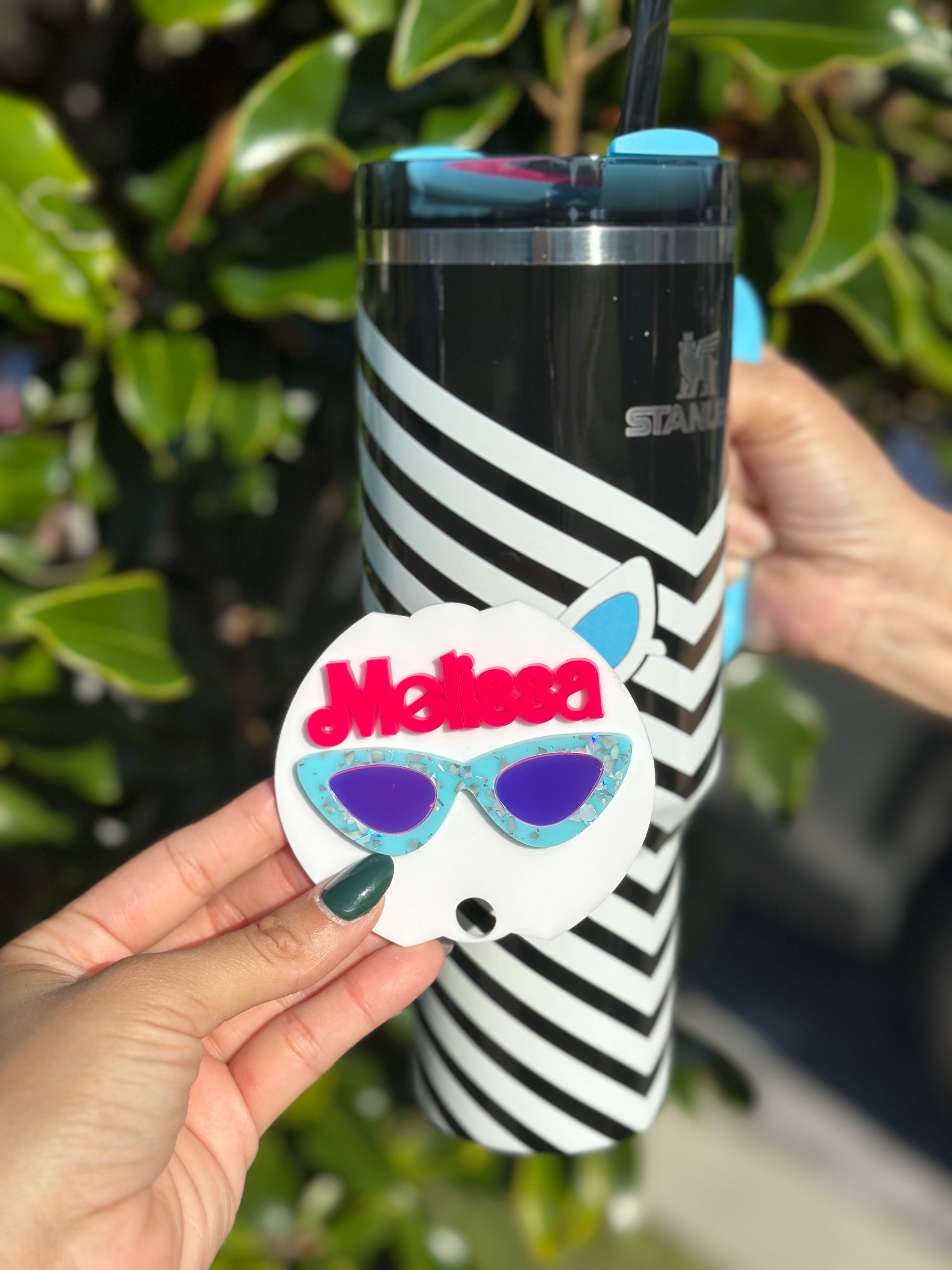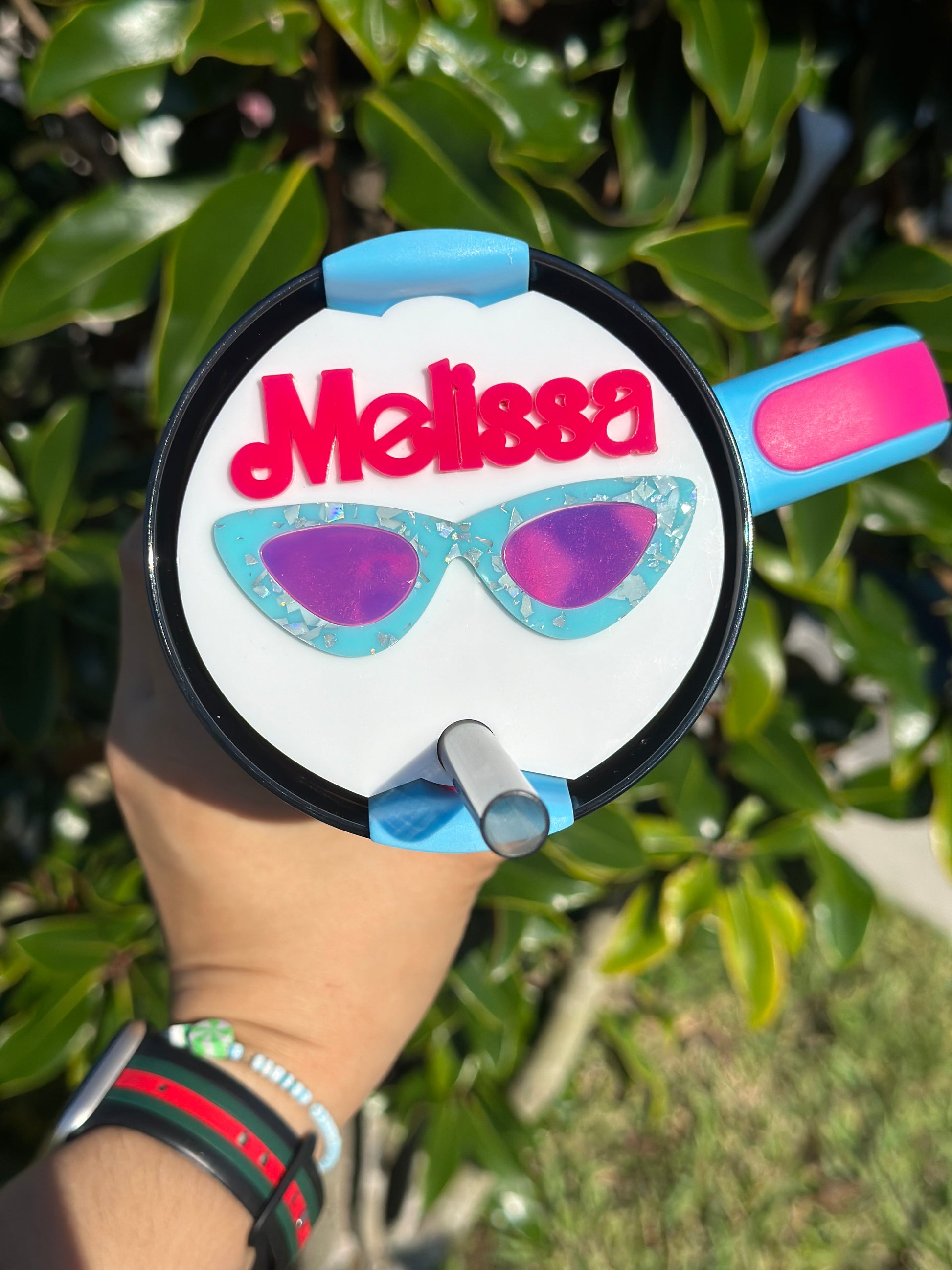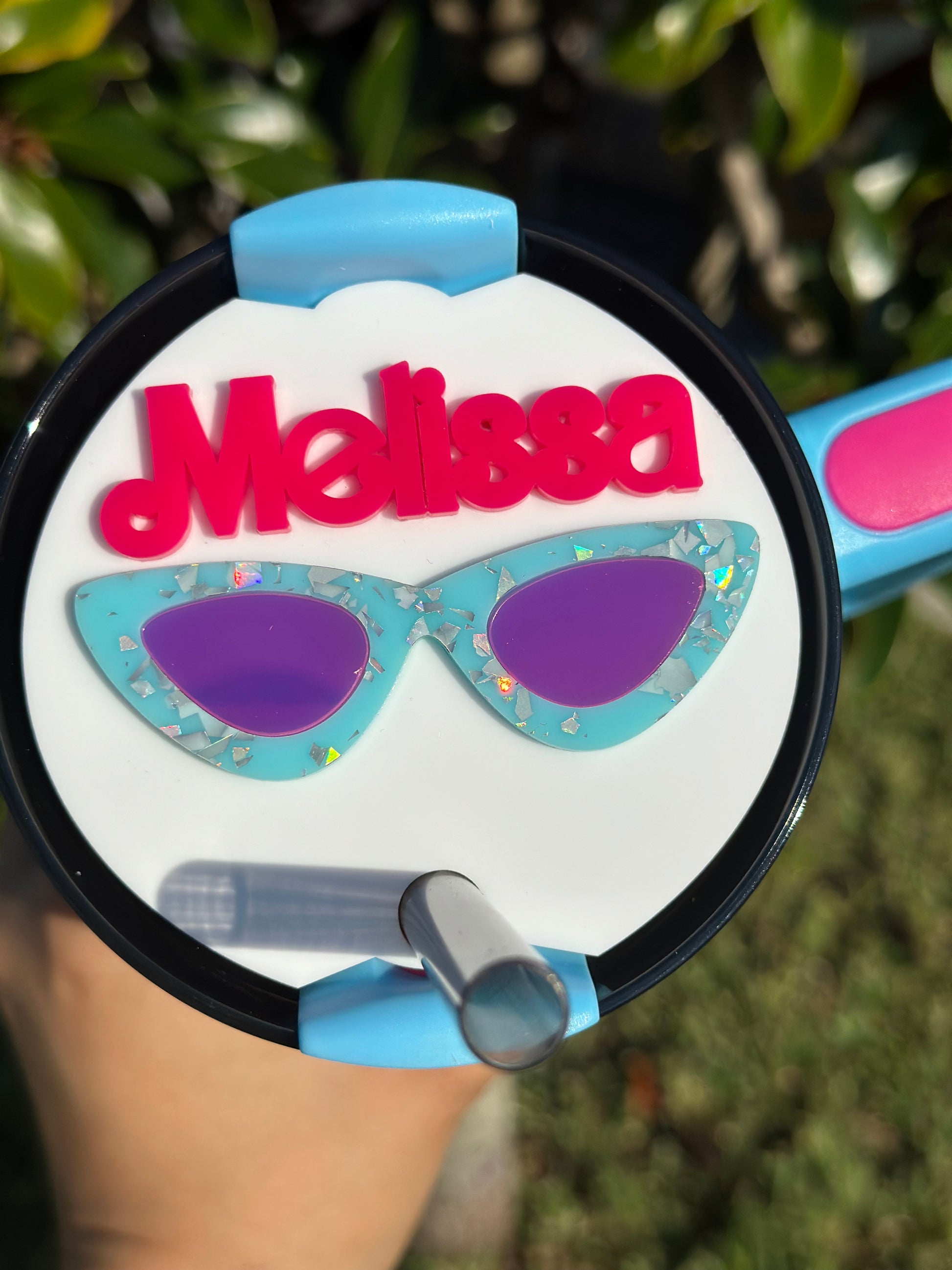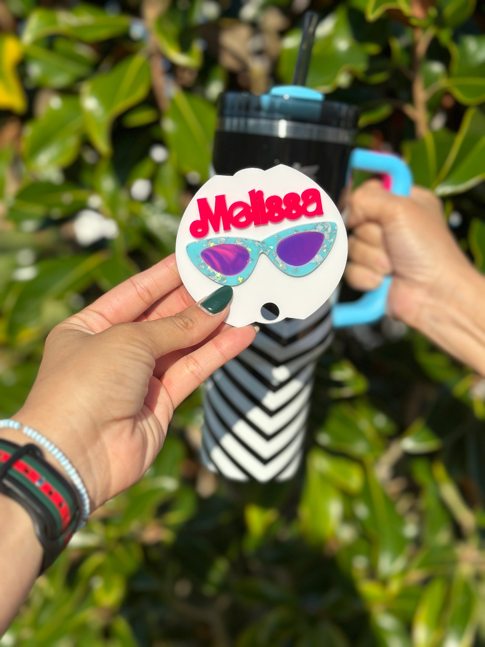 1 Retro Sunglasses Tumbler Topper: Featuring stylish 1950s-inspired sunglasses with a glitter backing and your personalized name or word.