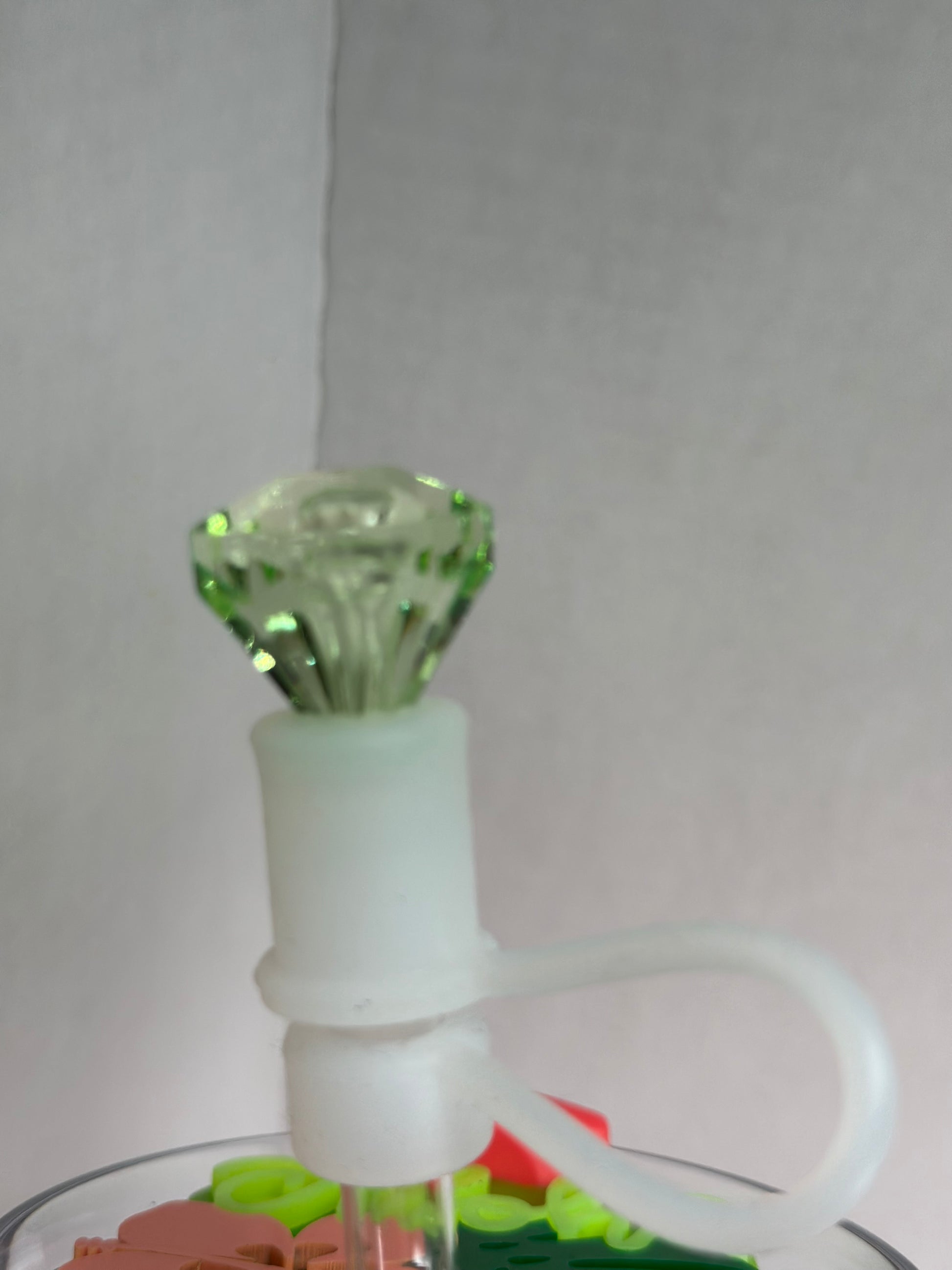 Add a touch of glamour to your tumbler with this stunning green diamond straw topper!