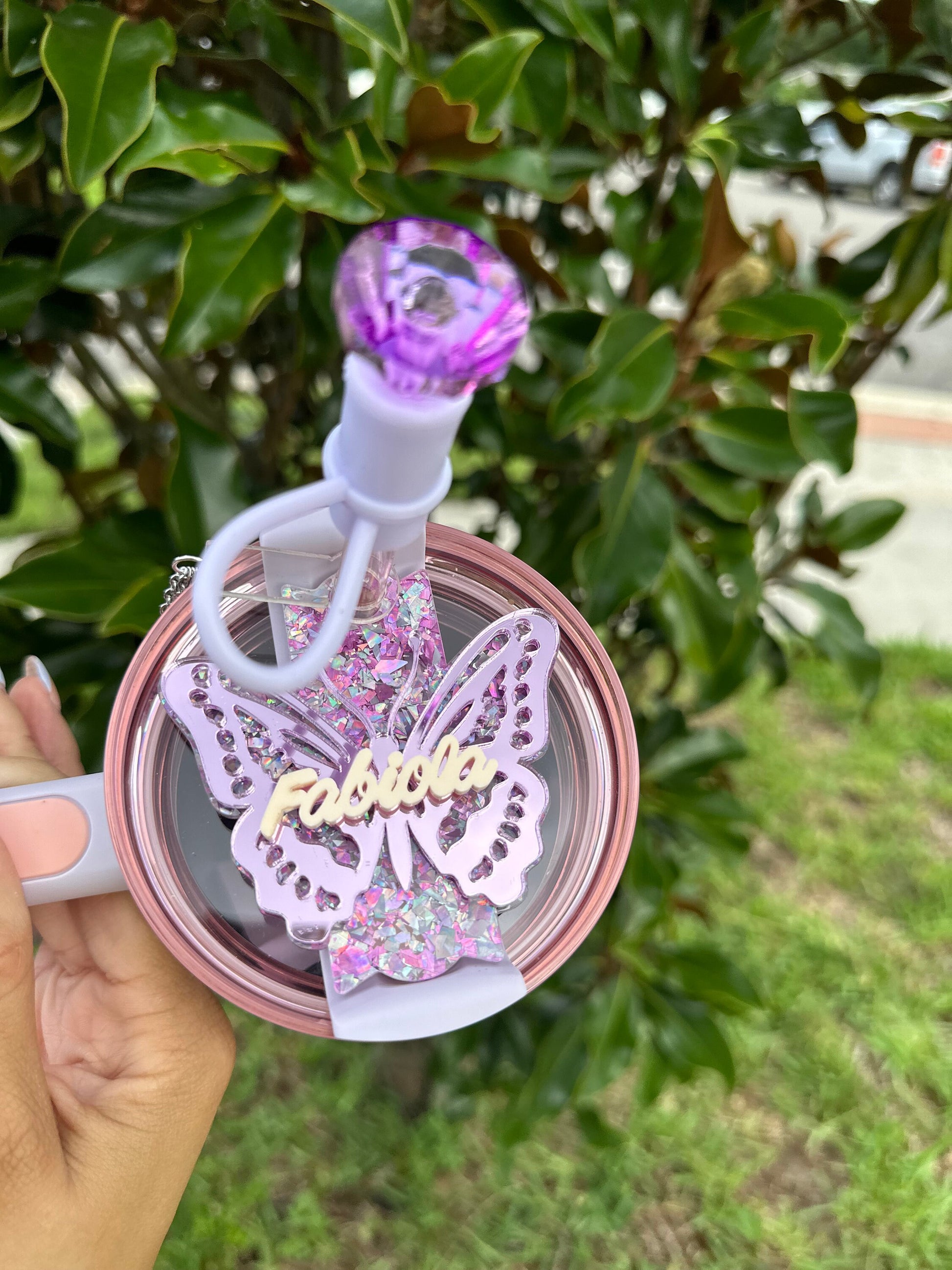 Butterfly Name Plate Topper: Personalize your tumbler with a graceful butterfly design that includes your name.