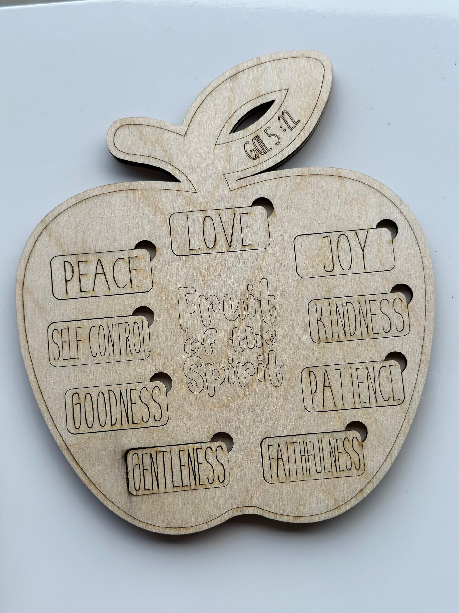 Invest in your child's education and faith with this wooden Fruit of the Spirit puzzle. It is a great way to teach your children about important Christian values while having fun at the same time.
