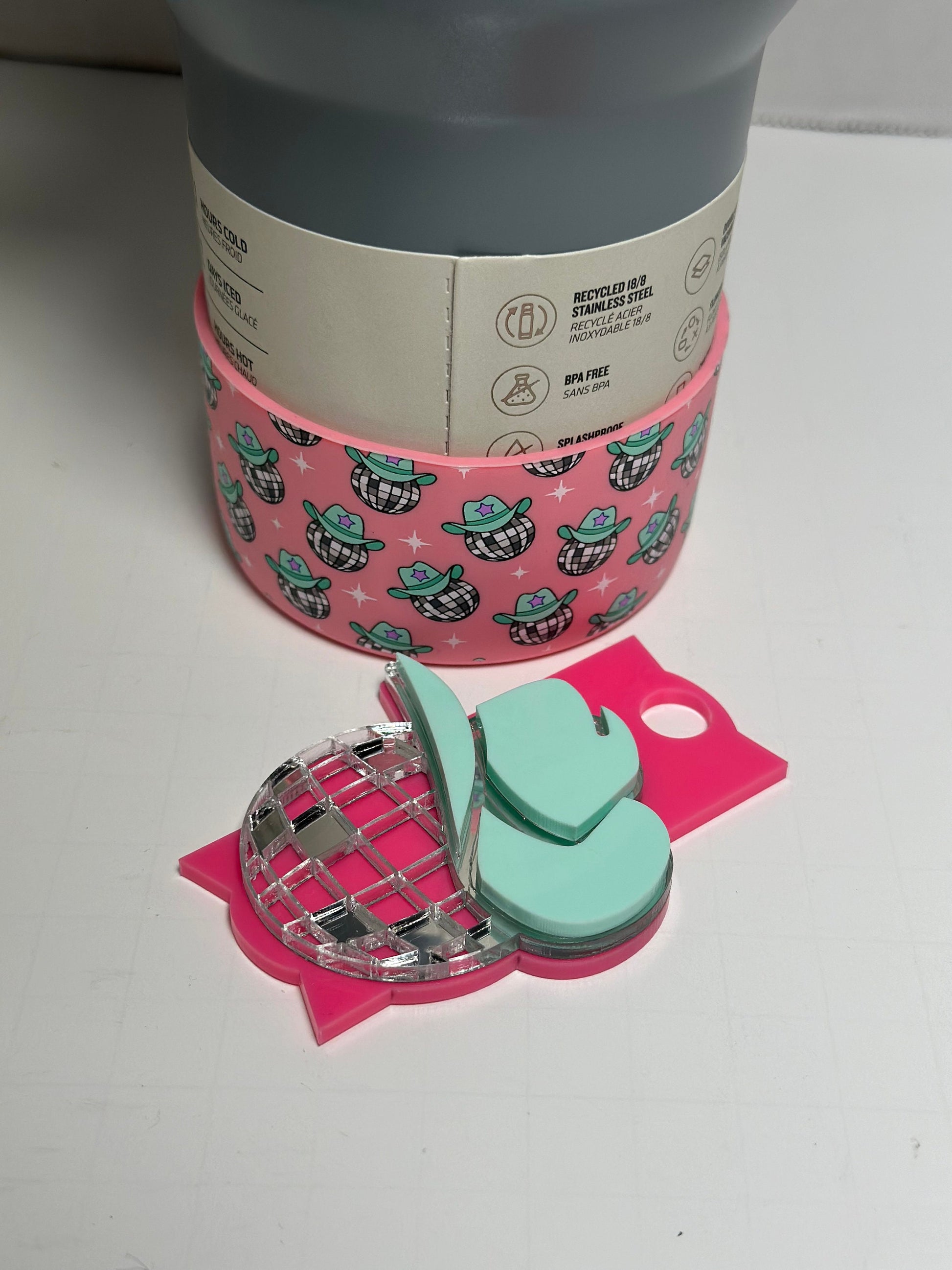 Cowboy Hat Tumbler Topper, Disco Ball Tumbler Topper, Stanley Tumbler Accessories, Western Theme Tumbler, Cowgirl Hat Tumbler, Custom Tumbler Topper, Pink and Mint Tumbler, Tumbler Straw Charms, Boot Tumbler Accessory