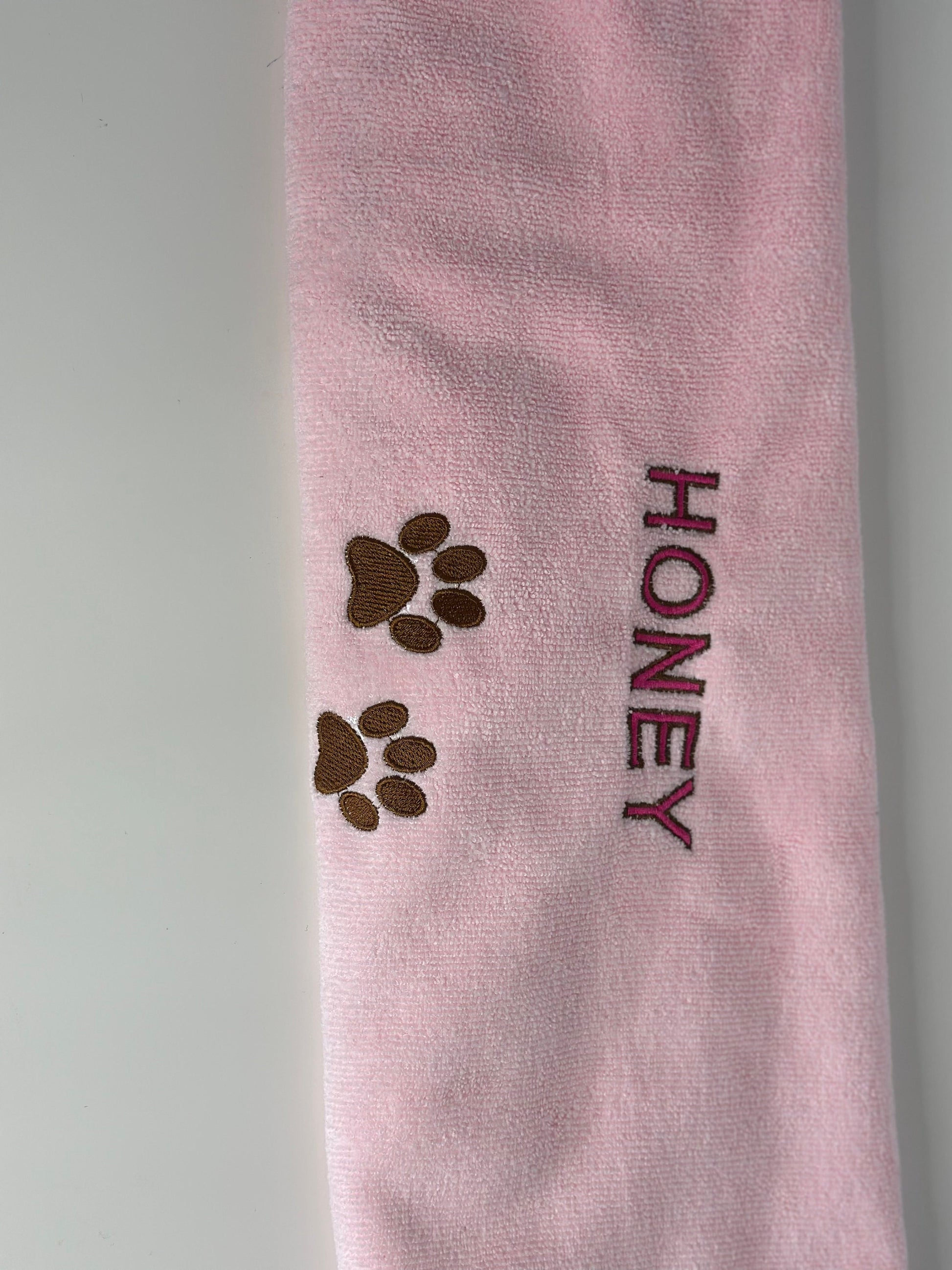 - Personalized Touch: The adorable paw print embroidery on the towel can be customized with your pet's name or any other text of your choice, making it a unique and thoughtful gift for pet owners.