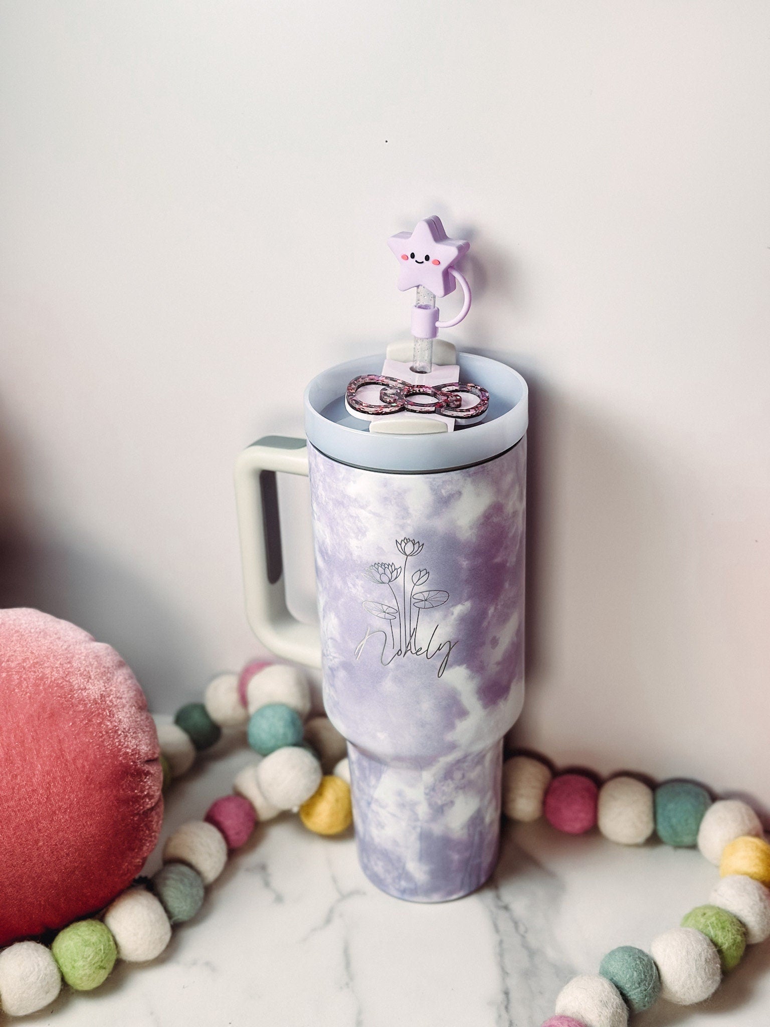 Custom 40 oz Insulated Tumbler – Birth Flower Tumbler Custom 40oz Tumbler with Handle &Straw Personalized Travel Cup Gradutation Present Galentines Gift for Best Friend Teen Present Kids Present Bridesmaid Gifts with Your Name!