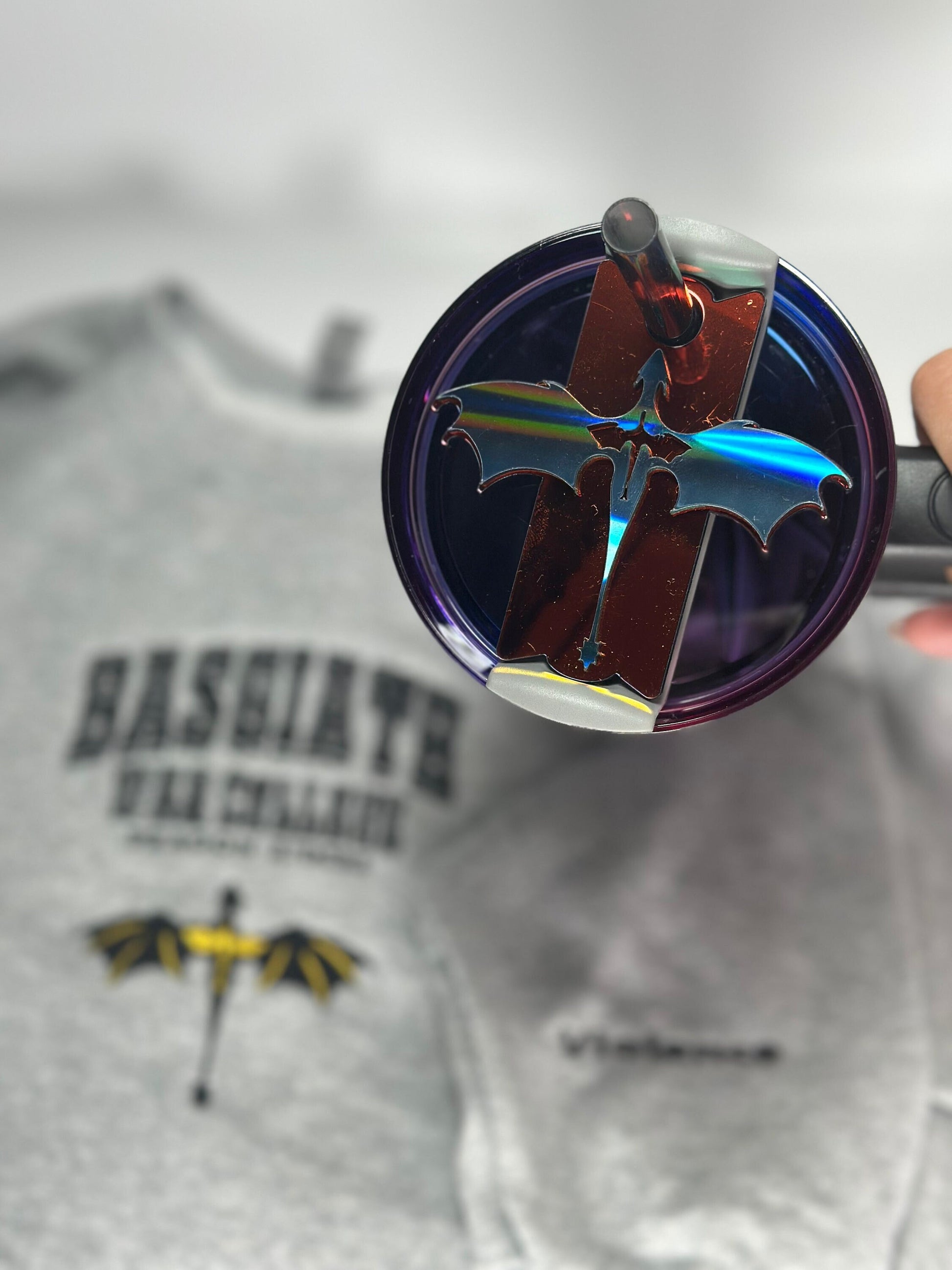 Each topper is laser-cut from 1/8" thick high-quality acrylic, promising not just an eye-catching accessory but a durable addition to your daily essentials. Designed to fit perfectly on the 40 oz H2.0 Quencher model, our toppers combine style with functionality.