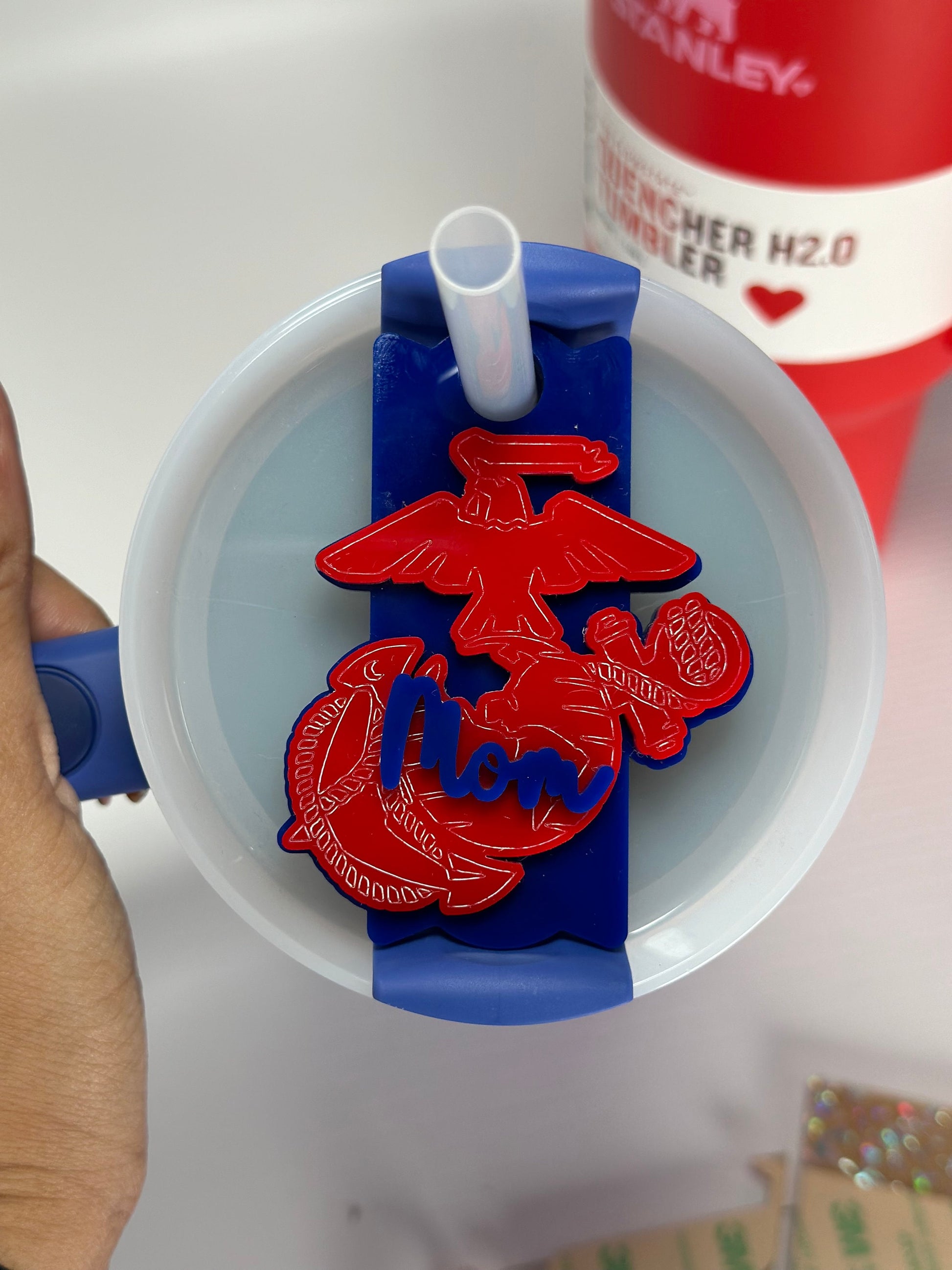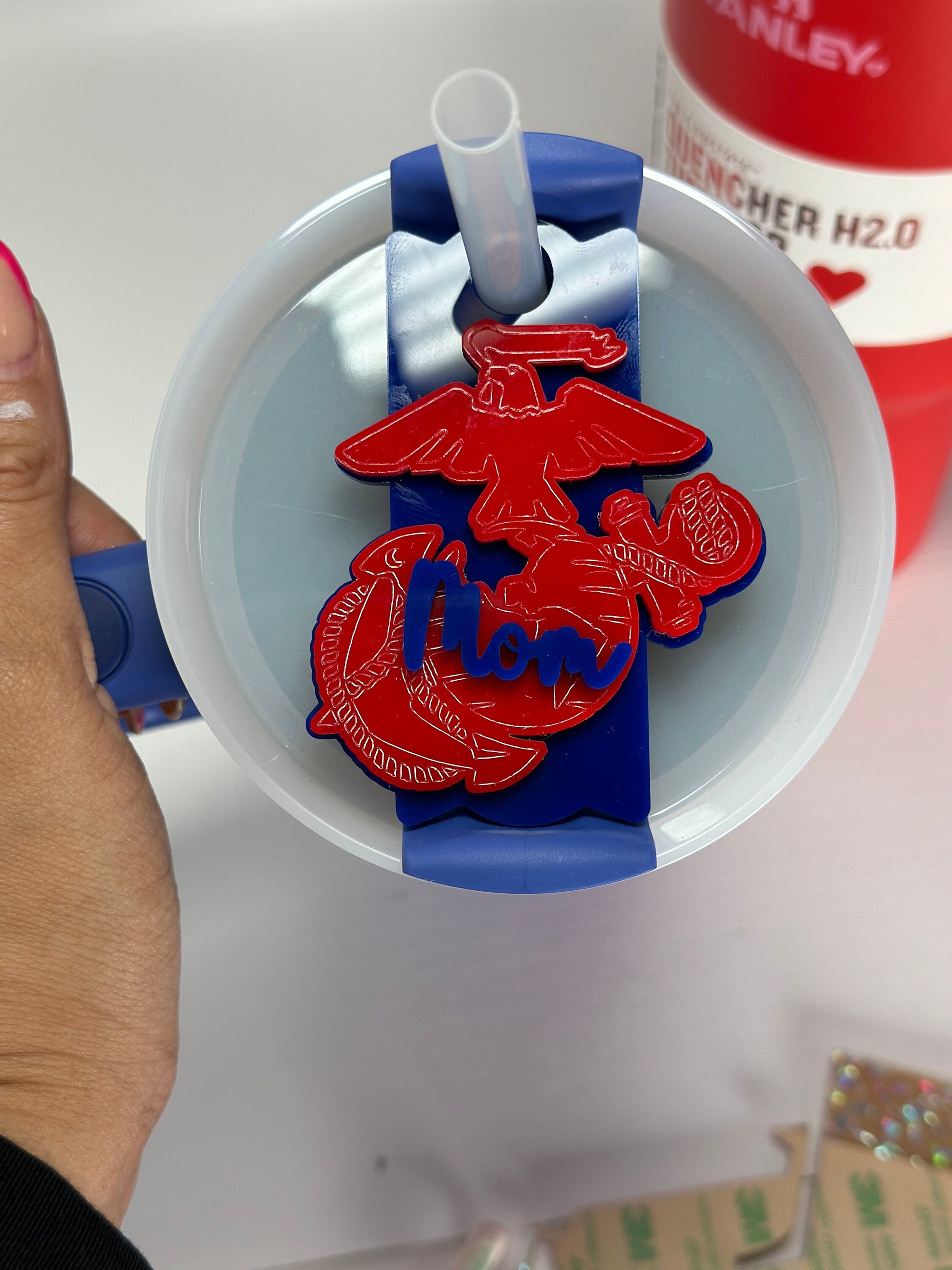Personalized Tumbler Name Plate USMC Flag Stanley Name Tag For Tumbler Plate Topper Acrylic EGA Name Plate Quencher Name Tag Military wife