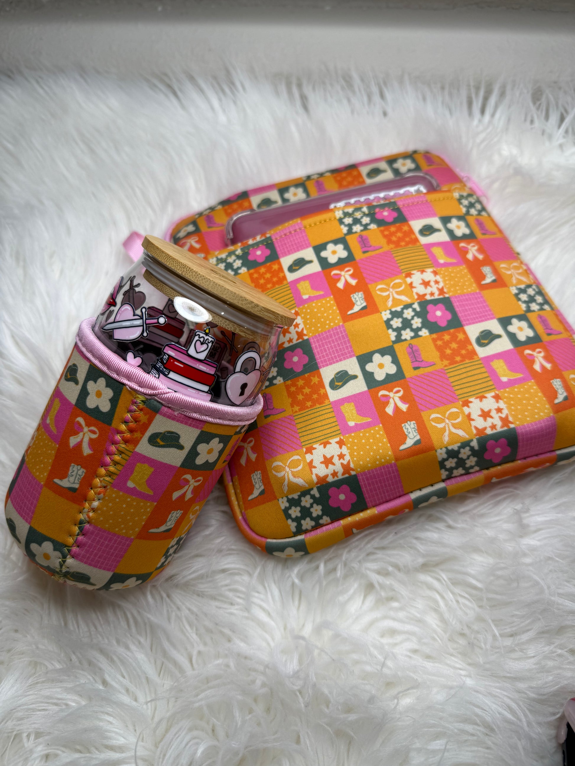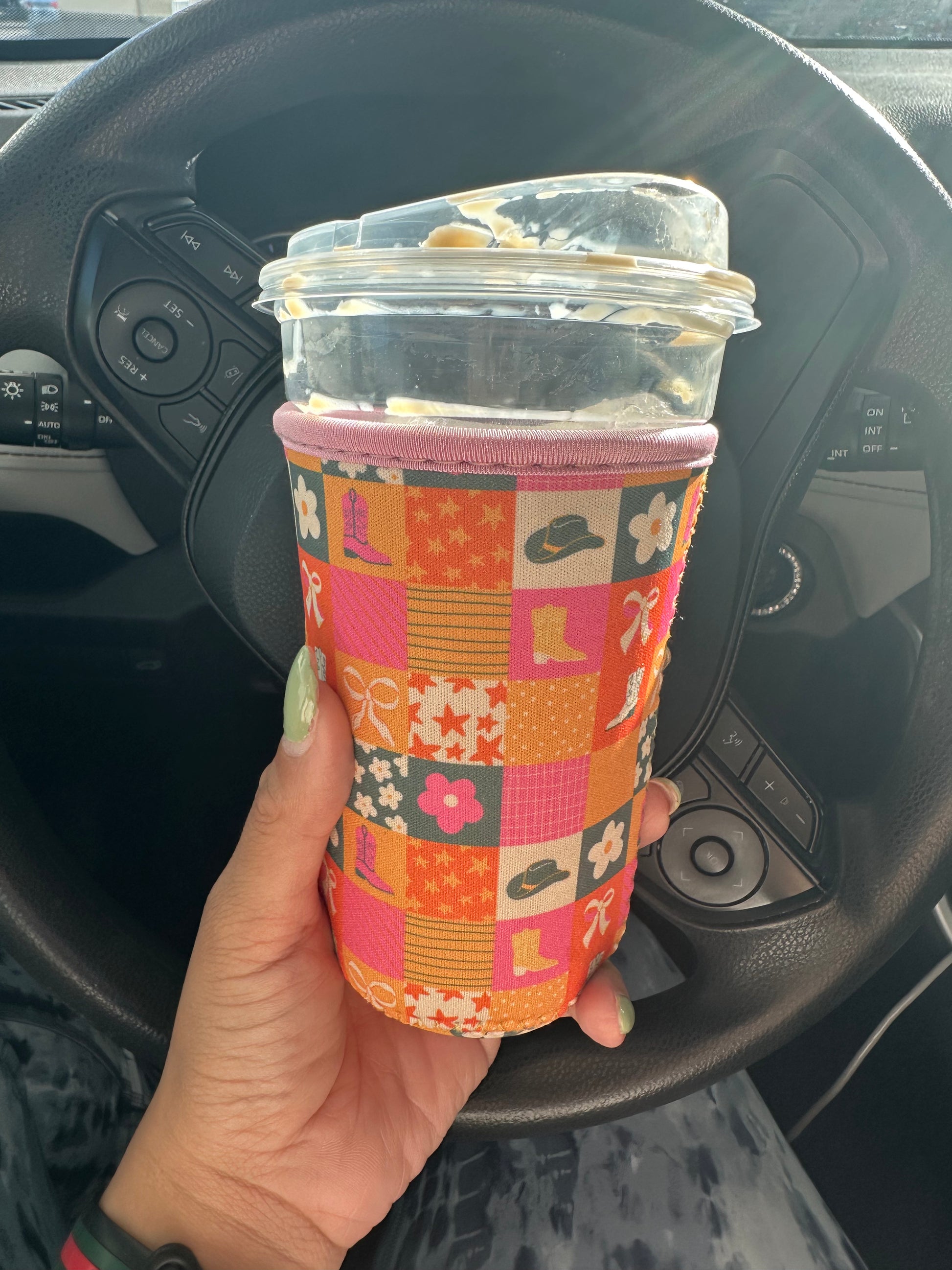 Our sleeves come in playful, scroll-stopping prints (like this western cowgirl patchwork dream)βdesigned to match your vibe or gift to a fellow coffee lover.