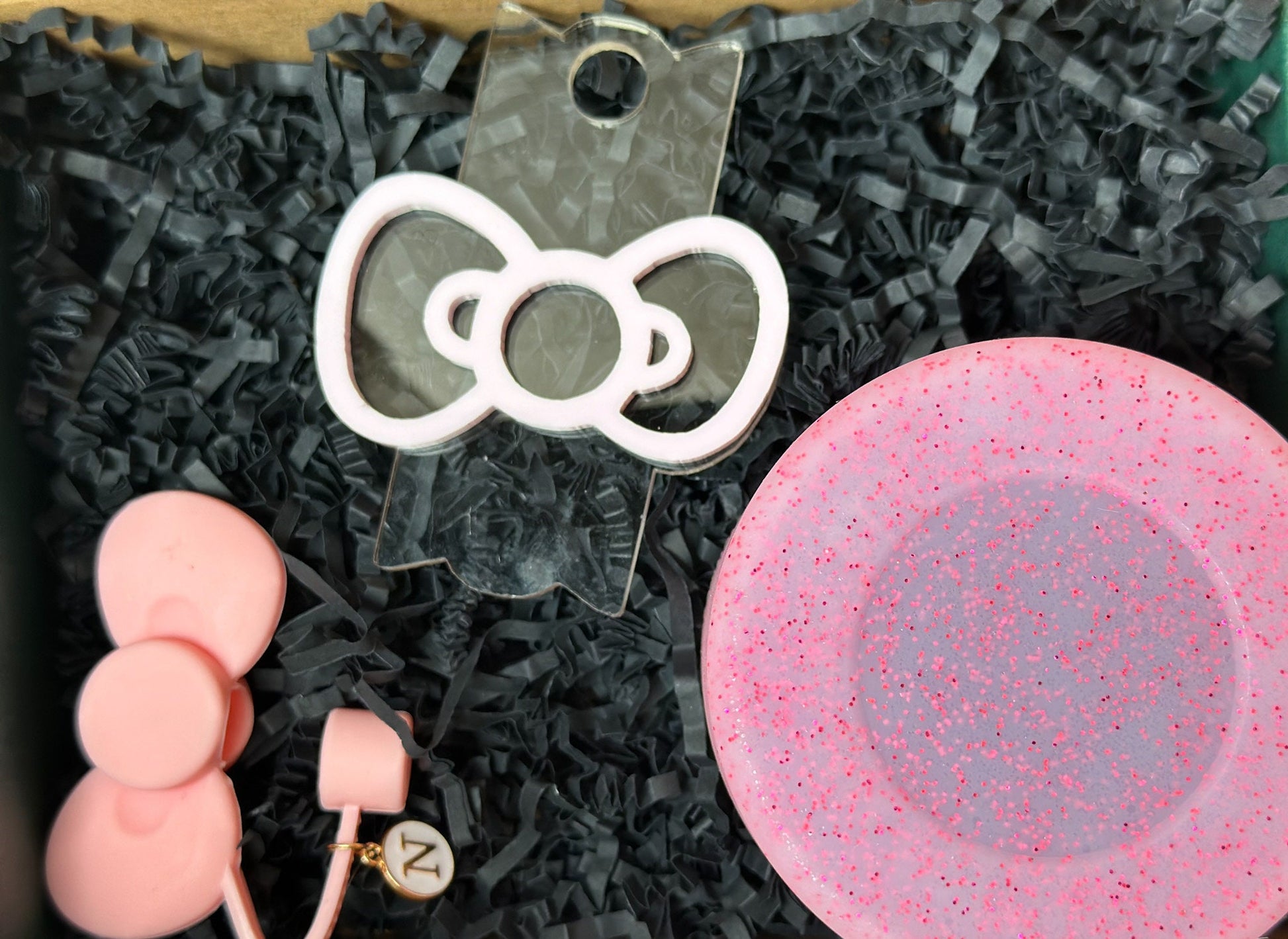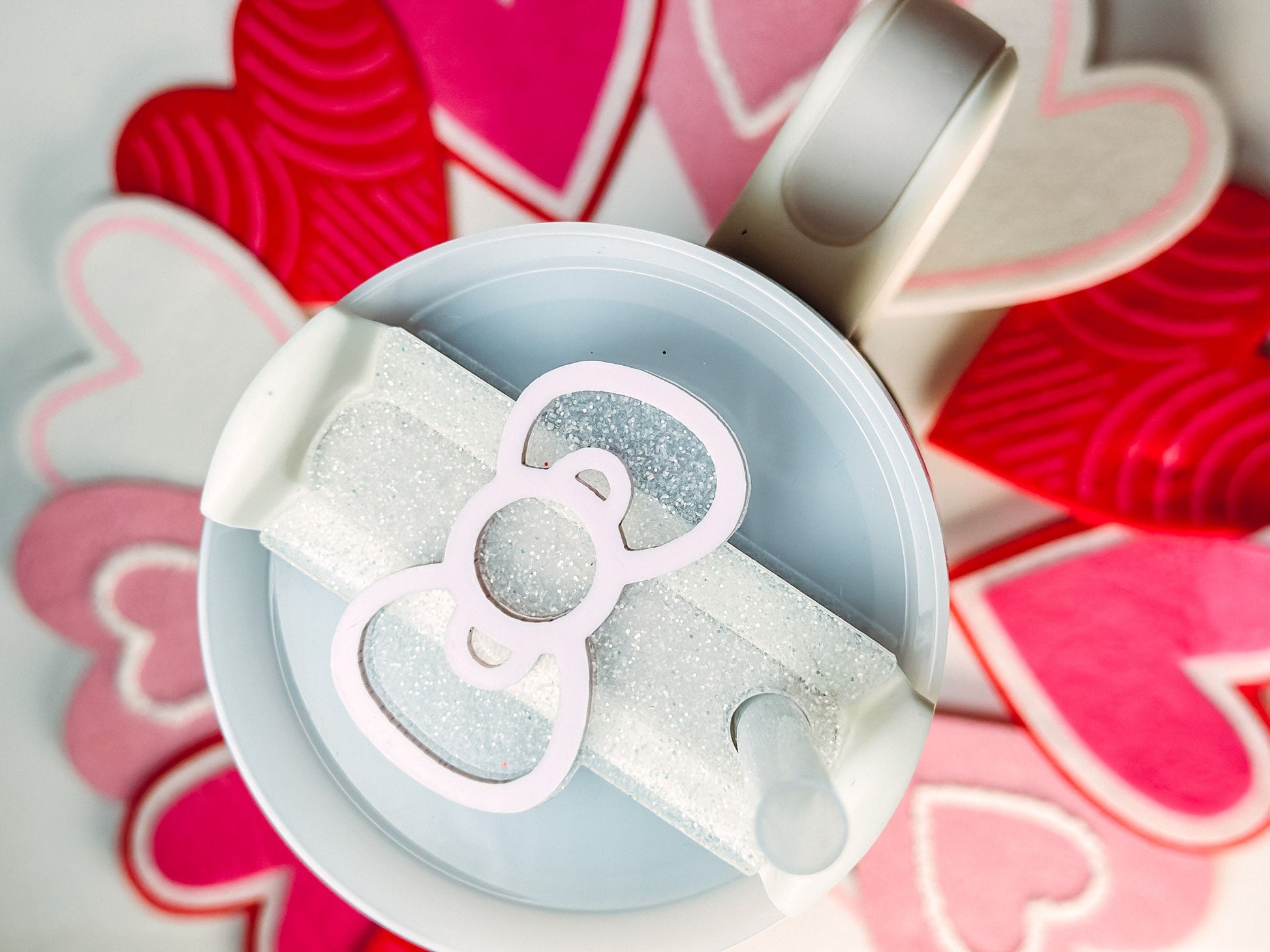 - šø Personalized Straw Topper (Pink Bow with Clear Glitter backer with white Initial)