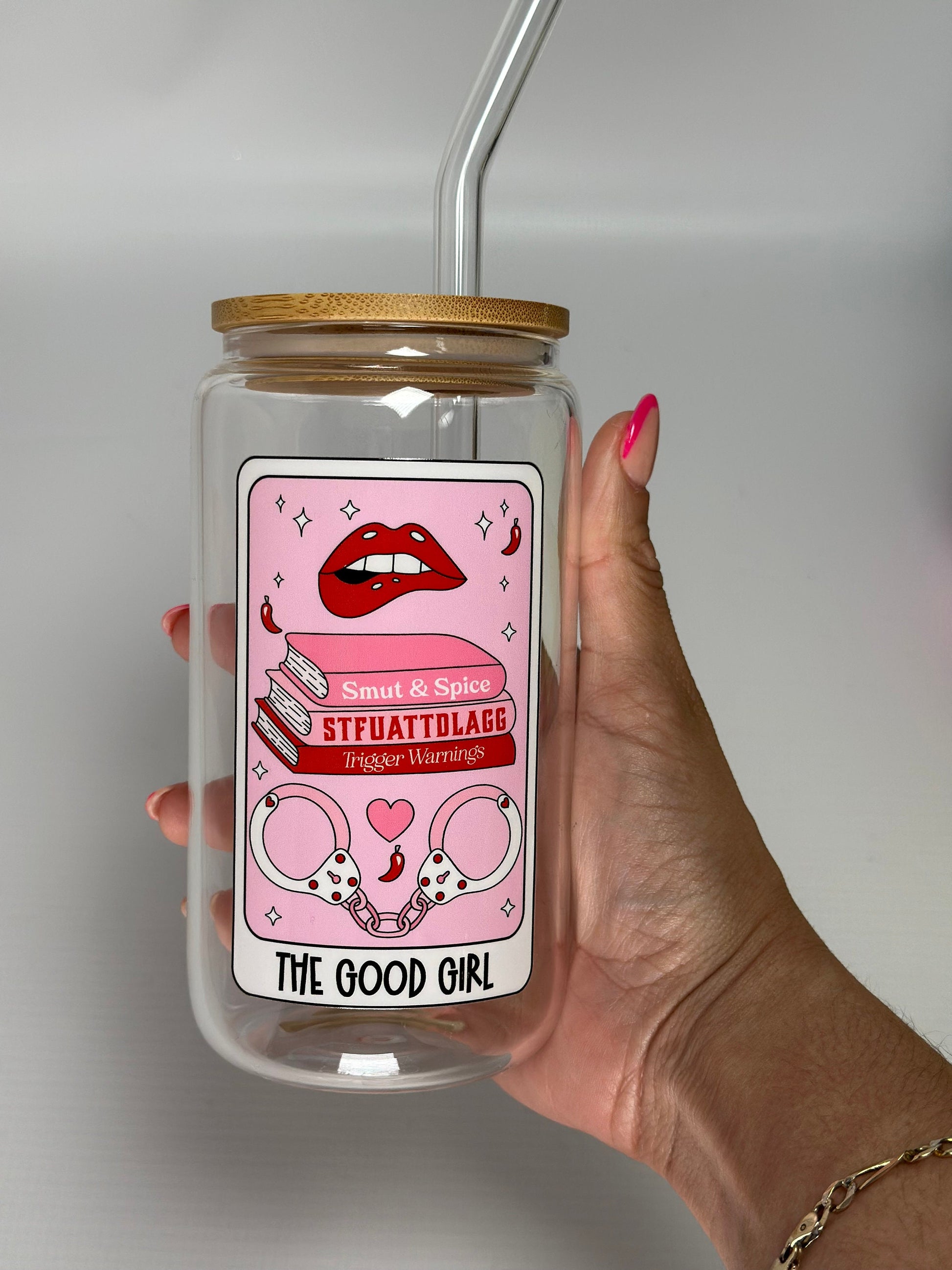 The Spice Glass Cup square glass up w/ Bamboo Lid & Straw coffee cup glass cup bookish booktok spicy book smut gift ideas